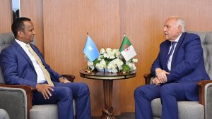 من جهة أخرى، جدد الوزير أحمد عطاف تهانيه لنظيره الصومالي بمُناسبة تعيينه على رأس وزارة خارجية بلاده واتفق معه على تجسيد جملة من التدابير الرامية إلى تطوير العلاقات الجزائرية- الصومالية، فضلا عن التأكيد على ضرورة مُواصلة التنسيق البيني على مستوى مجلس الأمن الأممي خدمة للقضايا العربية والإفريقية، لاسيما في إطار مجموعة الأعضاء الأفارقة الثلاث (A3).