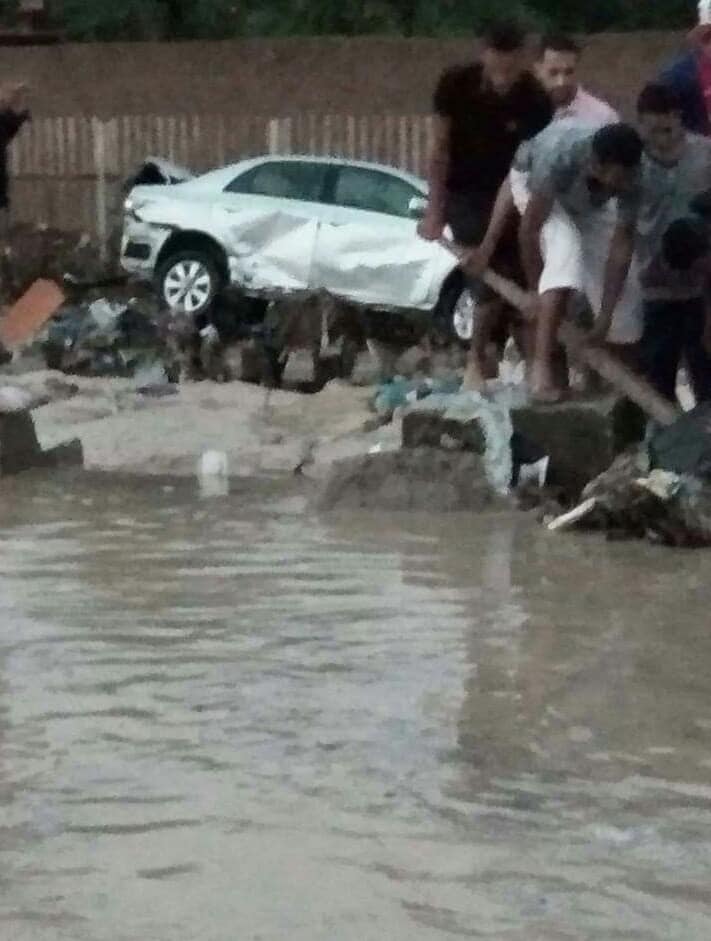 وأظهرت مقاطع ”فيديو” تم تداولها على موقع التواصل الاجتماعي فايسبوك، سيول الأمطار التي جرفت سيارات كانت مركونة في الشوارع، إضافة إلى ”غرق” أحياء وتجمعات سكنية.
