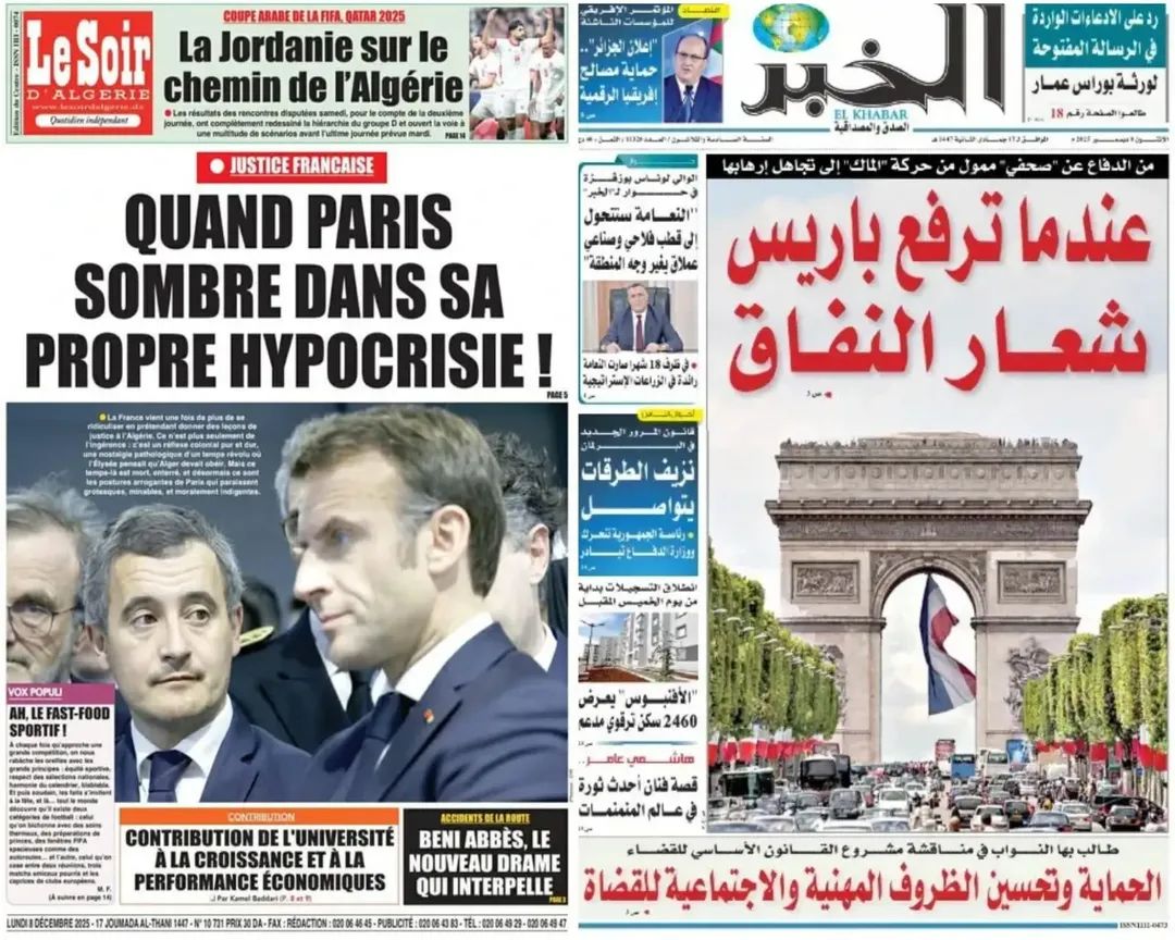 وتختتم الصحف الوطنية بالقول: “الجزائر لا تتلقى الدروس من أحد, وبالتأكيد ليس من سلطة فرنسية تعيش حالة انهيار أخلاقي”, مضيفة أن “باريس تغضب وتتوتر لأن الجزائر تتقدم, ولم تعد تنحني. فالشعب الجزائري قرر أن ينظر إلى الأمام, دون إذن أو وصاية أو قيود. ولهذا تحديدا, فإن فرنسا لا تغفر وربما لن تغفر أبدا”.