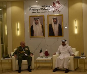 كما كان للسيد الفريق أول لقاء أخوي مع الفريق الركن طيار جاسم بن محمد المناعي، رئيس أركان القوات المسلحة القطرية، أين تناول الطرفان حالة التعاون العسكري الثنائي وسبل تطويره إلى مستوى العلاقات الممتازة التي تربط بين الجزائر وقطر، والارتقاء بها إلى تطلعات قائدي البلدين الشقيقين.