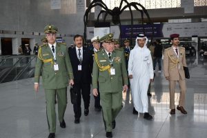 عقب نهاية مراسم الافتتاح الرسمي لهذه التظاهرة العالمية، التي تقام تحت إشراف سمو أمير دولة قطر، طاف السيد الفريق أول والوفد المرافق له، ببعض أجنحة المعرض، حيث عاين عن كثب العتاد والمعدات المعروضة، على غرار الأسلحة ومنظومات الأسلحة عالية التقنية، واستمع باهتمام إلى شروحات وافية وعروض قدمها القائمون على الأجنحة.