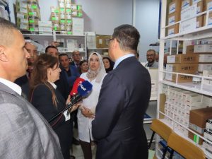 كما أولى السيد الوزير عناية لمصلحة الصيدلة، حيث وقف على سير العمل بها واطّلع على مختلف الجوانب المرتبطة بتسيير الأدوية والمستلزمات الطبية. وقد تلقى شروحات مفصلة من طرف الصيادلة الممارسين حول آليات التموين والتخزين والتوزيع، وكذا مدى توفر الأدوية الأساسية واحترام شروط الحفظ وفق المعايير المعتمدة.