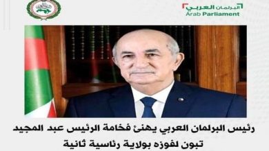 رئيس البرلمان العربي يهنئ رئيس الجمهورية السيد عبد المجيد تبون بفوزه بعهدة رئاسية ثانية