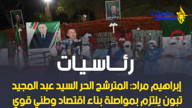 إبراهيم مراد: المترشح الحر السيد عبد المجيد تبون يلتزم بمواصلة بناء اقتصاد وطني قوي