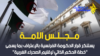 إستنكر مكتب مجلس الأمة, يوم الأحد في بيان له, القرار “المخزي” الذي إتخذته الحكومة الفرنسية تجاه قضية الصحراء الغربية العادلة,…