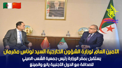 لوناس مقرمان يستقبل بمقر الوزارة رئيس جمعية الشعب الصيني للصداقة مع الدول الأجنبية يانع وانمينغ